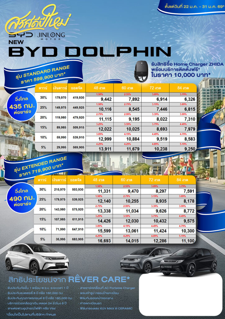 ตัวแทนจำหน่ายรถยนต์ไฟฟ้า EV Car (Electric Vehicle) BYD อย่างเป็นทางการ